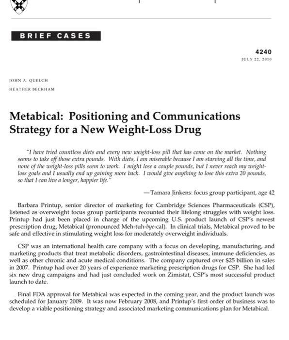 Solved Brief Cases John A Quelch Heather Beckham Metabical Chegg Com